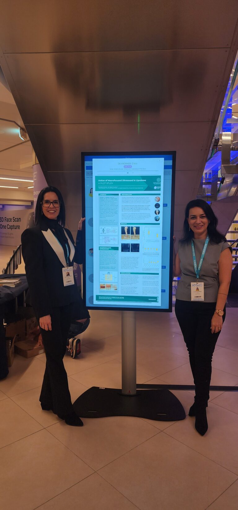 Todo este conhecimento me levou à compra de equipamentos modernos e à incorporação de novas técnicas. Entender o Lipedema por completo me levou para simpósios online dos EUA, Espanha e Itália, além de um curso presencial na Bélgica em fevereiro de 2023, o 1o Congresso Internacional de Lipedema, realizado na Alemanha em outubro de 2023, o evento FDRS da Fat Disorders Resource Society (realizado em Atlanta em março de 2025) e o evento AMWC em Mônaco, também em março de 2025.